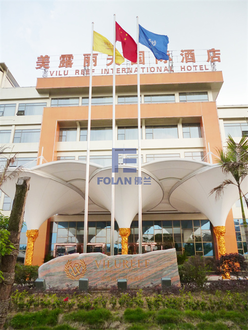 膜结构,凭其轻盈的结构,独特的造型,已广泛应用于酒店建筑中,比如膜结构酒店门头、膜结构建筑外墙、膜结构屋顶以及膜结构天花吊顶。酒店建筑运用膜结构,不仅造型独特,还能营造明亮、温馨、别具一格的室内环境。