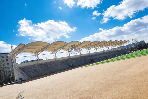 当校园看台告别单调的灰色棚顶,当结构美学与实用功能完美融合,我们在年前交出了一份亮眼答卷 ——云南 竹节拱 PTFE 膜结构看台,以轻盈之姿,守护每一场青春呐喊。