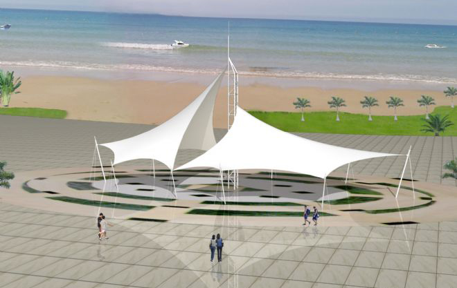 现代城市广场在城市整体的空间环境中扮演着多种角色,它的设计虽然只是城市设计的一个方面,但与城市的总体布局和环境质量密切相关。膜结构景观设计正是通过对城市中每处小的局部设计与对城市环境总体的考虑来实现的,并终端达到城市整体性环境的统一。该膜结构只有在城市整体空间环境中创作,做到空间与实体的结合,才能产生完好的建构。